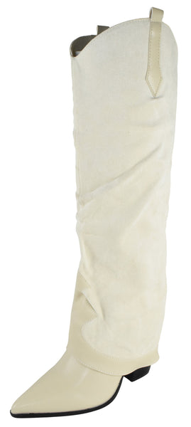 - Berness Women’s Brandy Suedette Foldover Knee High Boots – Western Cowboy Style, Pointed Toe, Hidden Block High Heel, Faux Suede & Leather Mix, Hidden Zipper / Pull-On Fashion Boots