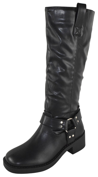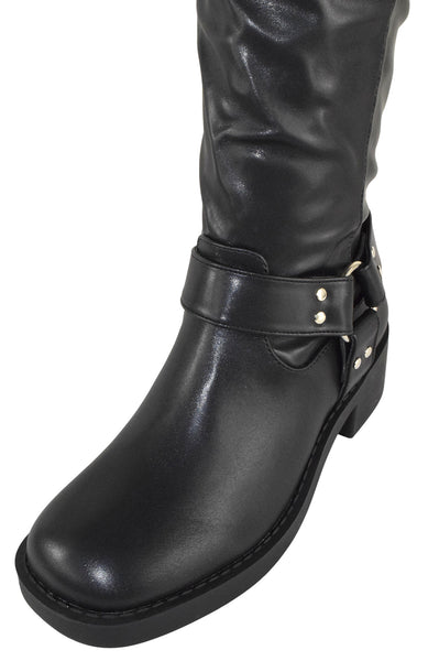- Berness Women Knee High Boots Buckle Strap Riding Side Zippers Short Block Heel SPENCER