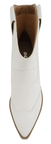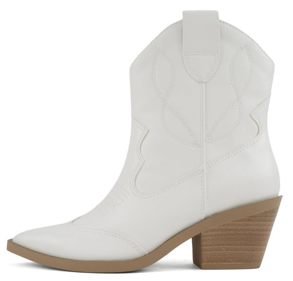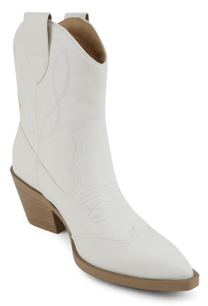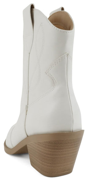 Soda Women Ankle Boots Western Cowboy Slip On Short Block Heel Pointed Toe Cowgirl Stitched Booties INCITY-S White