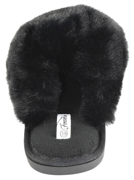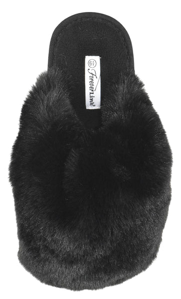 Forever Women Faux Fur Slip-On Cozy Slippers Extra Fluffy Soft Plush Furry Mules Warm Comfy Winter Home Slippers RECAP-36 Black