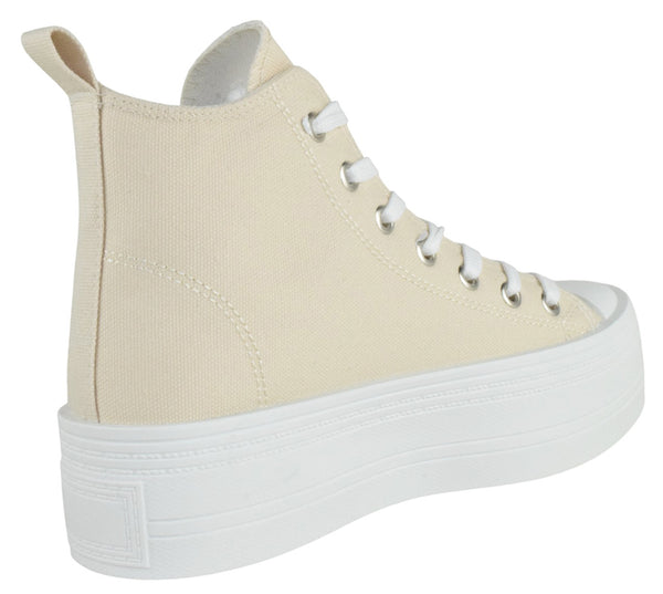 Step up your sneaker game with the SHERRY-1, where comfort meets street style. These cute canvas high-tops feature a chunky platform sole that adds instant attitude to any outfit, while the lace-up design keeps your feet secure and supported. Perfect for casual days, weekend adventures, or whenever you want to make a bold fashion statement. The thick flatform base isn't just for looks—it delivers the cushioning and stability you need to stay comfortable all day long. Elevate your everyday style with these versatile trainers that work with everything from jeans to dresses.