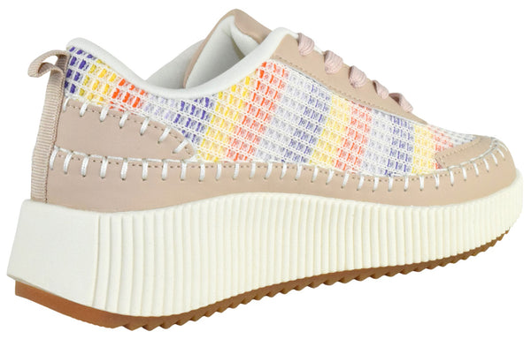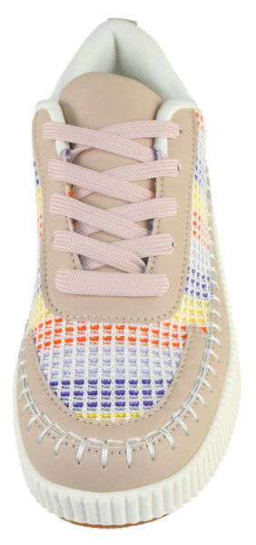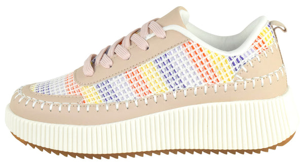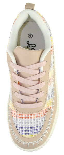 La Sheelah Women Knitted Low Top Patchwork Fashion Sneaker Casual Lace-Up Comfort Walking Shoes Lightweight Platform Sole Trendy Woven Design TIMELESS-12 Beige Nude