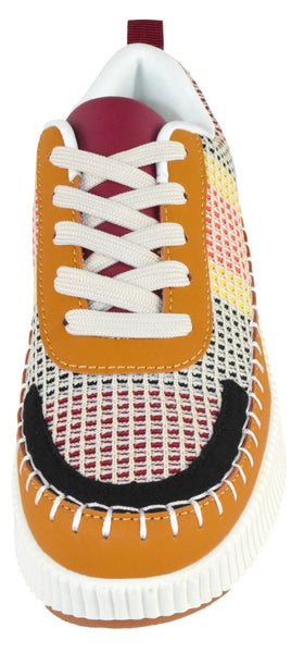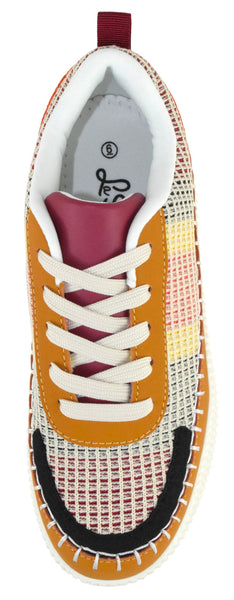 - La Sheelah Women Knitted Low Top Patchwork Fashion Sneaker Casual Lace-Up Comfort Walking Shoes Lightweight Platform Sole Trendy Woven Design TIMELESS-12