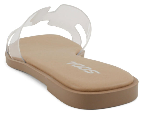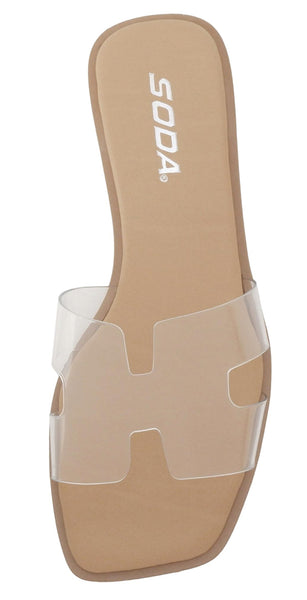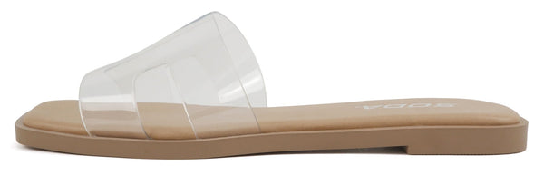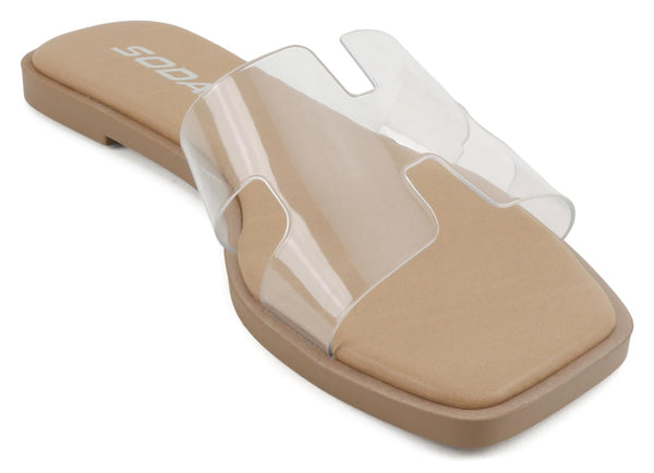 - Soda Shoes Women Slip-On Cushioned Sandals H-Band Flat Flip-Flops Slides Square Toe KNIT-S