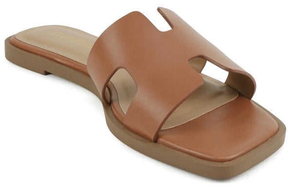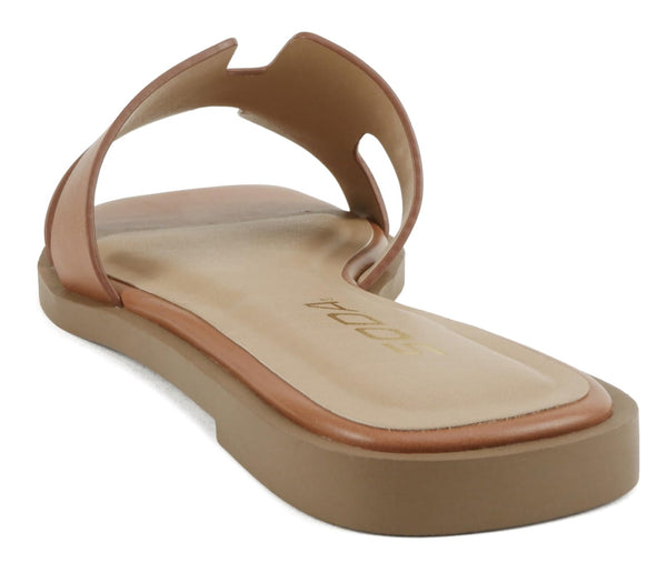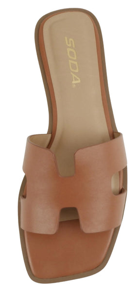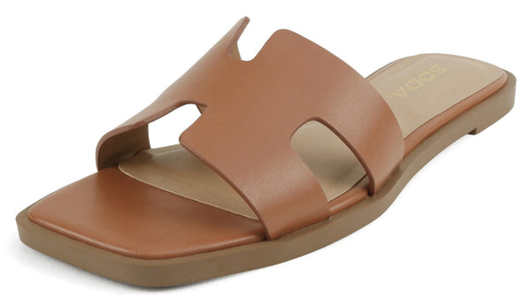- Soda Shoes Women Slip-On Cushioned Sandals H-Band Flat Flip-Flops Slides Square Toe KNIT-S