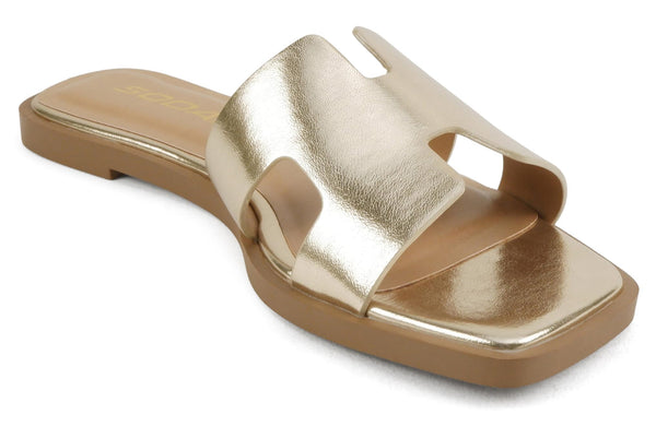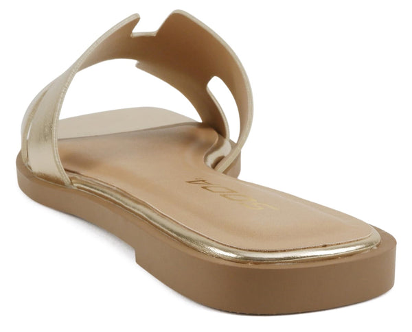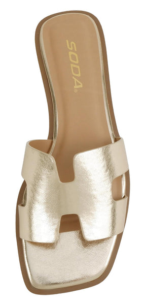 - Soda Shoes Women Slip-On Cushioned Sandals H-Band Flat Flip-Flops Slides Square Toe KNIT-S