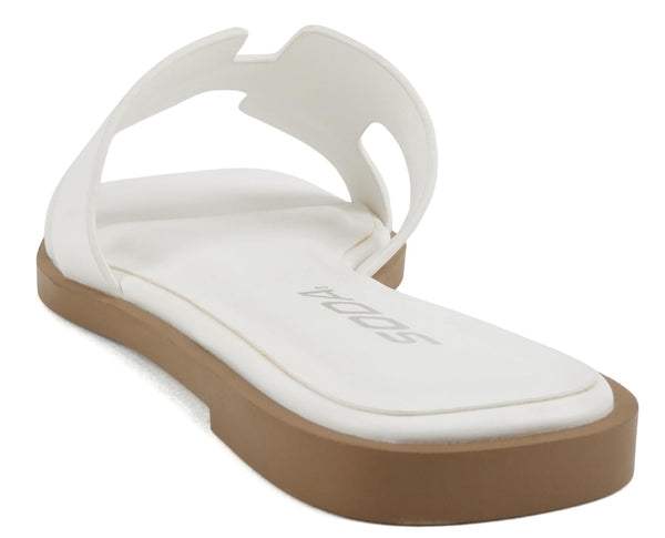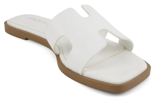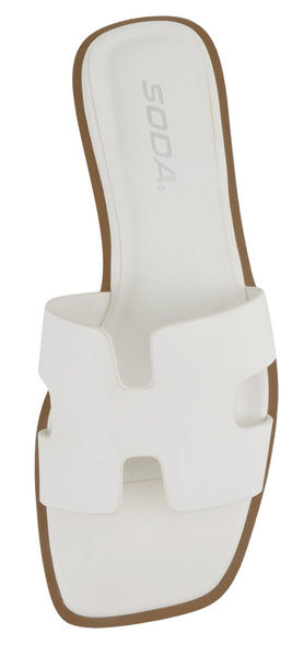- Soda Shoes Women Slip-On Cushioned Sandals H-Band Flat Flip-Flops Slides Square Toe KNIT-S