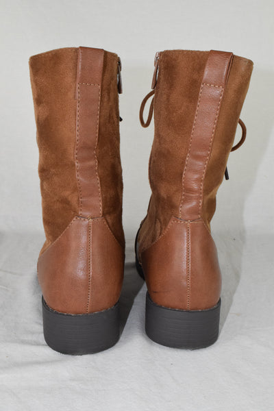 Forever Women Combat Army Boots Lace Zipper Leather/Suede JALEN Brown Tan 7.5