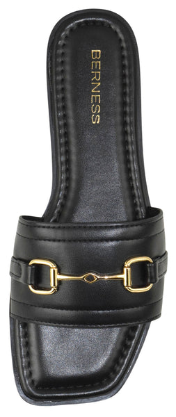 - Berness Women’s Slide Sandals – Square Open Toe Flat Sandals with Cushioned Footbed, Lightweight Slip-On Slides, Gold Chain Hardware, Casual Dress Summer Shoes KAMARI