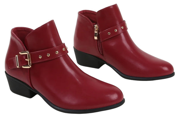 - Berness Women Ankle Boots Buckle Studded Strap Sides Zippers Block Short Heel Booties KASHVI