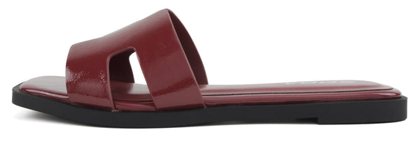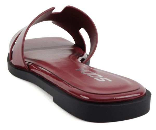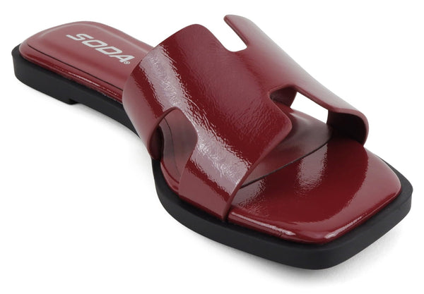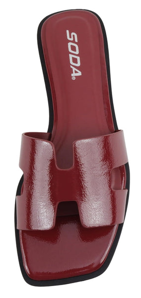 Soda Shoes Women Slip-On Cushioned Sandals H-Band Flat Flip-Flops Slides Square Toe KNIT-S Cherry Burgundy Red