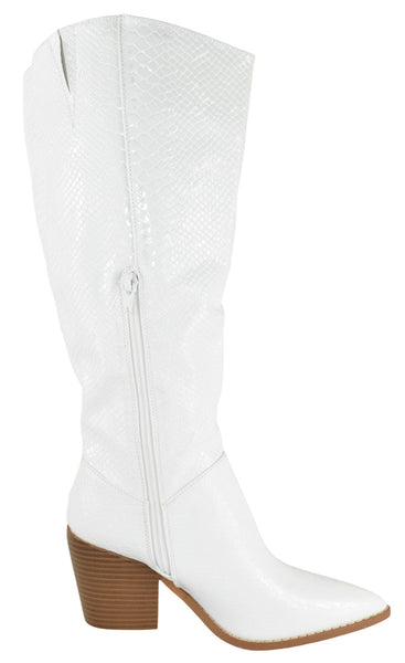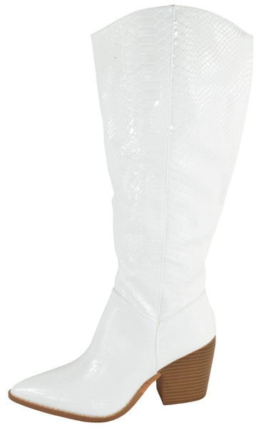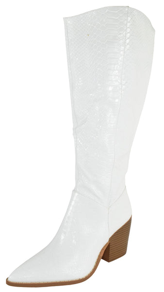 - Berness Women Knee High Western Cowboy Boots Side Zippers Block High Heel Pointed Toe Snakeskin Print LILIBETH