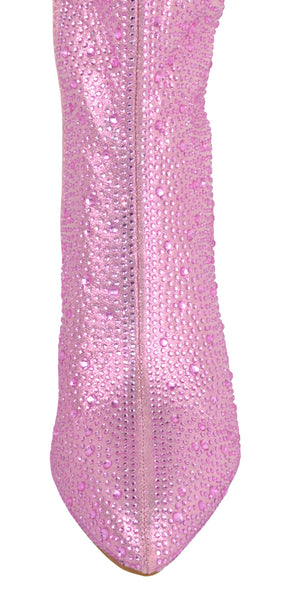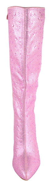 TOP MODA Women Knee High Rhinestone Studded Bling Boots Side Zippers Block High Heel Pointed Toe Sparkly MARTHA-22 Pink