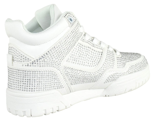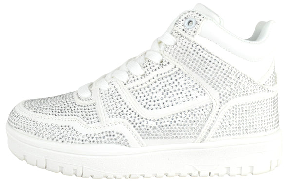 Step into sparkle and style with the RICH-42 La Sheelah, where high-top fashion meets dazzling glamour. These lace-up Chelsea sneakers feature eye-catching rhinestone bling and studded details that turn heads wherever you go. Perfect for adding a touch of shimmer to your everyday look, these sneakers blend comfort with show-stopping sparkle. Whether you're hitting the streets or making a statement, the La Sheelah delivers that perfect mix of edgy and elegant that keeps your feet looking fabulous.