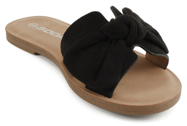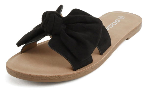 - Soda Women’s Slide Sandals – Open Toe Bow Knot Strap Flat Sandals, Casual Summer Slip-On Sandals, Lightweight Comfort Slides ROAD-S