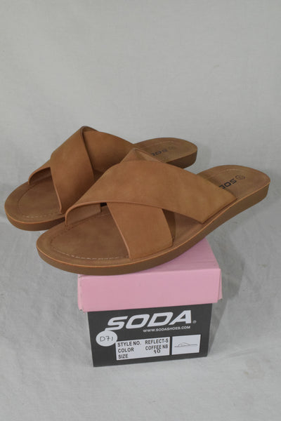 Soda Shoe Women Sandals Crisscross Band Strap Casual Slides REFLECT Tan Brown 10