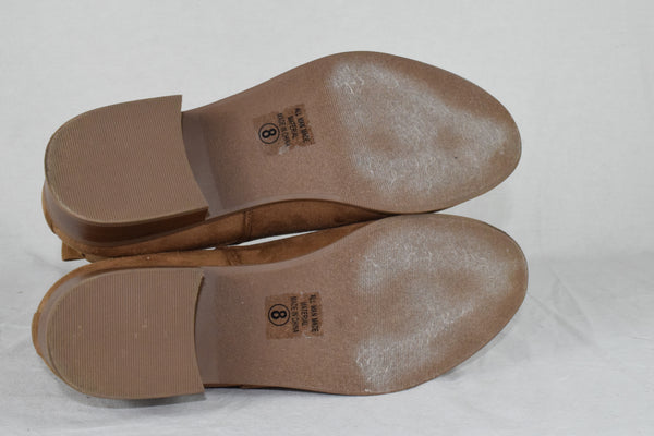 Used once indoorSoda Women Ankle Boot Elastic Slip On Pull On Booties Block Heel Tan Brown Suede TEAPOT Size 8D48XXX