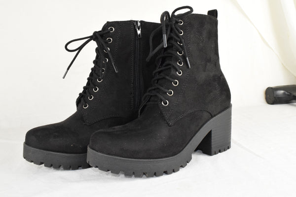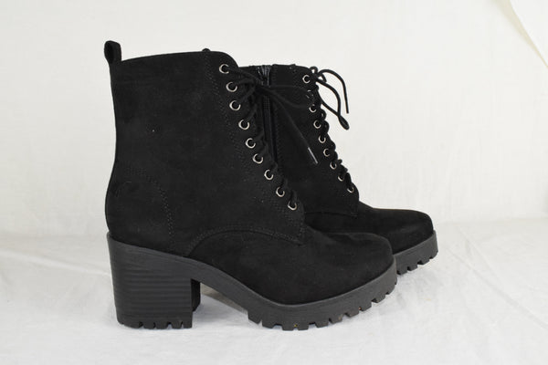 Soda Women High Heels Ankle Boots Combat Lug Sole Booties Black FUZZY Size 7.5
