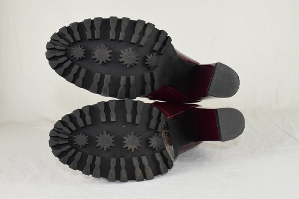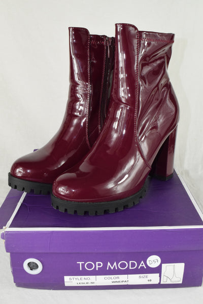 Top Moda Women Ankle Boot Block High Heels Booties Zipper LESLIE-50 Red Burgundy Patent Size 10