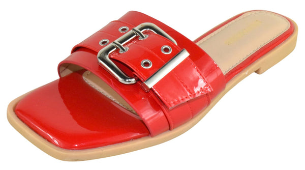 - Berness Women’s Slide Sandals – Metal Eyelet Buckle Strap, Cushioned Footbed, Lightweight Slip-On Flat Sandals TRACE